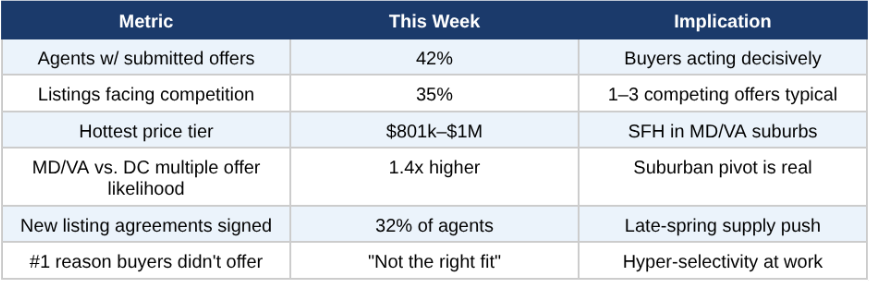 If you've been watching the DC market for the past few months, you know it's been a mixed bag — lots of showings, but plenty of hesitation. That's changing. This week's data shows a sharp uptick in offer activity:
