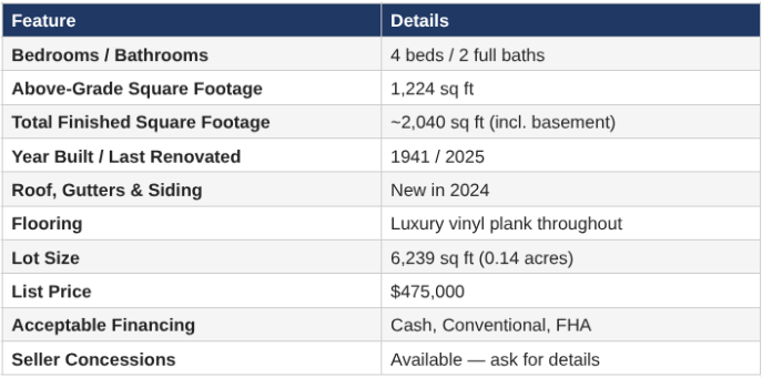 Renovated 4-Bedroom Home Near DC Metro in Hyattsville, MD — Now Listed at $475,000